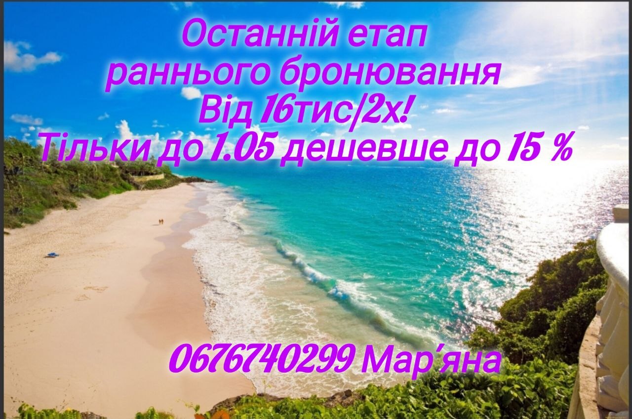 ОСТАННІЙ 4 й етап раннього бронювання — дешевше до 15 % дешевше, ніж влітку! Триває до 1.05.2026. Ціни від 16 тис../2х