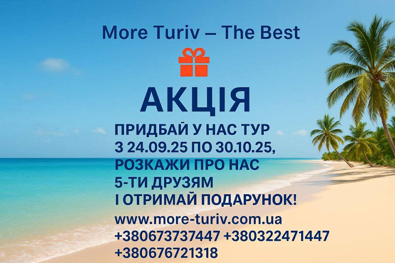 Акція «ПРИДБАЙ У НАС ТУР З 24.09.25 по 30.10.25, РОЗКАЖИ ПРО НАС 5-ТИ ДРУЗЯМ і ОТРИМАЙ ПОДАРУНОК!»