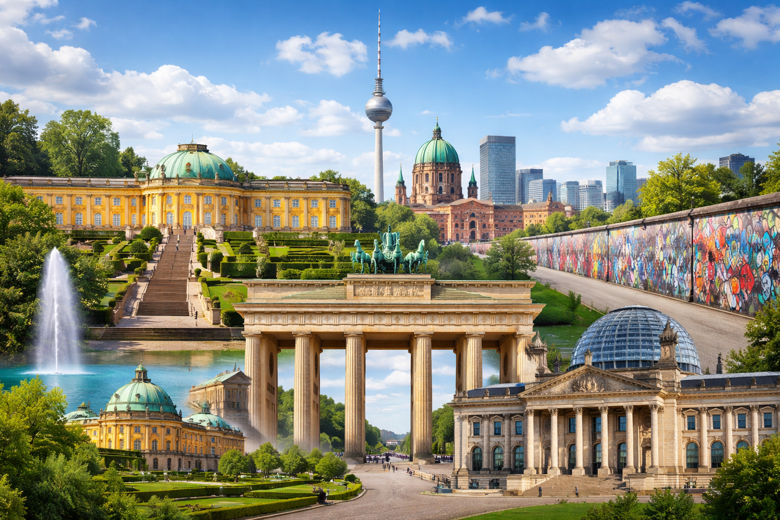 Подорож до Берлін і Потсдам — це знайомство з різними сторінками історії Німеччини. Ці міста розташовані поруч і століттями були тісно пов’язані між собою. Берлін став політичним і культурним центром країни, а Потсдам — улюбленою резиденцією прусських королів і місцем, де створювалися розкішні палаци та парки.