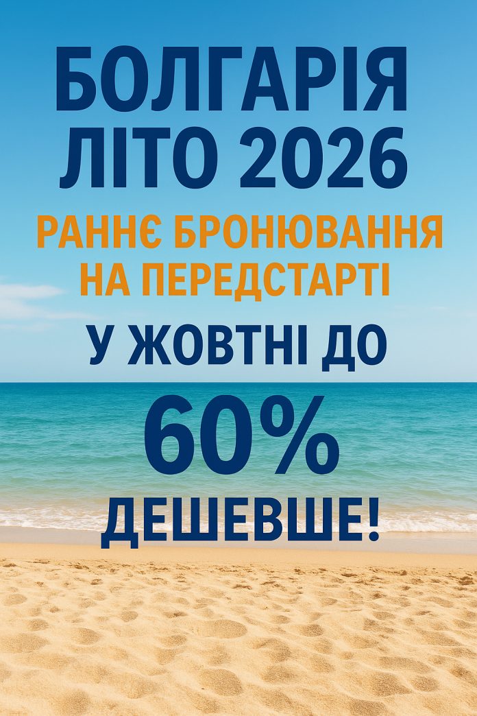 Болгарія літо 2026 — раннє бронювання на передстарті, у жовтні до 60% дешевше! Море й відпочинок дешевше зараз.