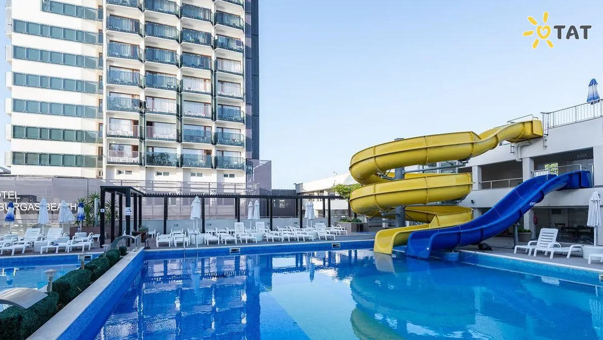 Розташований всього за кілька кроків від великого піщаного пляжу Сонячного берега.