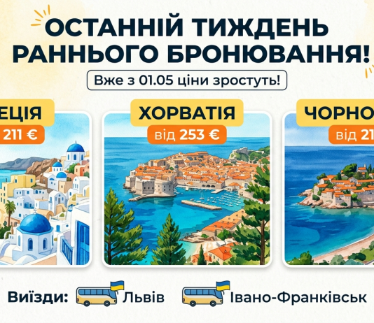 АКЦІЯ Бронюєш тур до кінця тижня — отримуєш -5% знижки