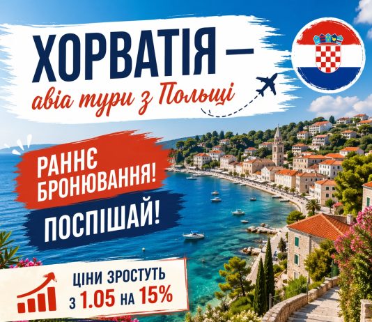 Хорватія — авіа тури з Польщі. Раннє бронювання! Поспішай! Ціни зростуть з 1.05 на 15%