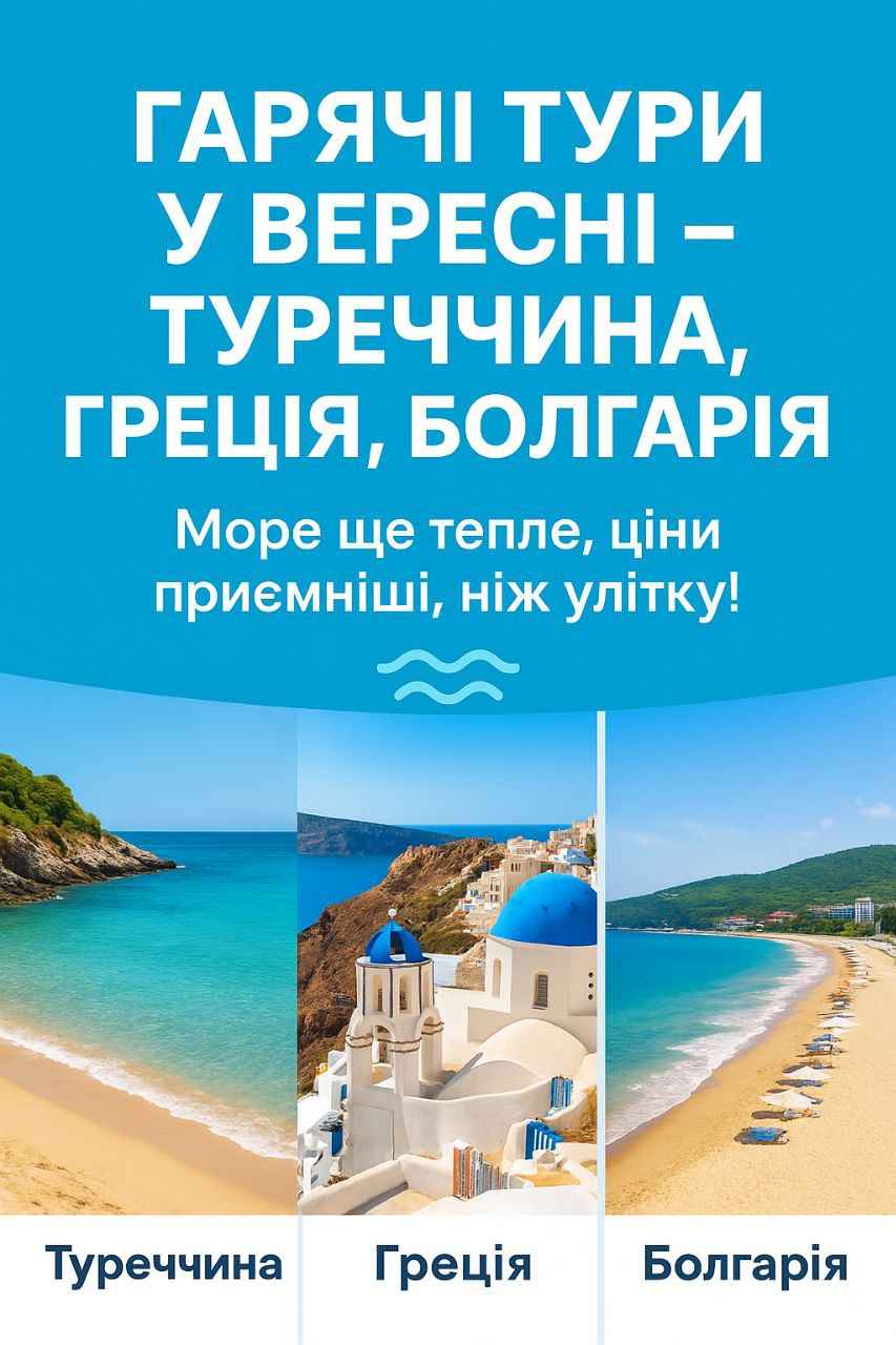 Вересень – ідеальний час, щоб відчути літо без натовпів туристів і переплат. Сонце, море, смачні страви та комфортний відпочинок чекають на тебе у Туреччині, Греції та Болгарії.