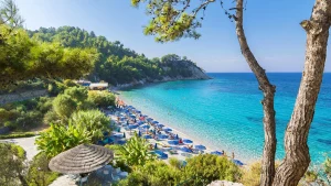 Готель розташований на березі бухти Лімніонас, а позаду могутній масив гори Керкіс ☑️