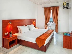 ✔️ Номерний фонд налічує 67 номерів. Ваш тип номера — Standard Room Garden View з площею приблизно 20 кв.м для 2 дорослих, оснащений кондиціонером, сейфом, телевізором, холодильником, феном та балконом.