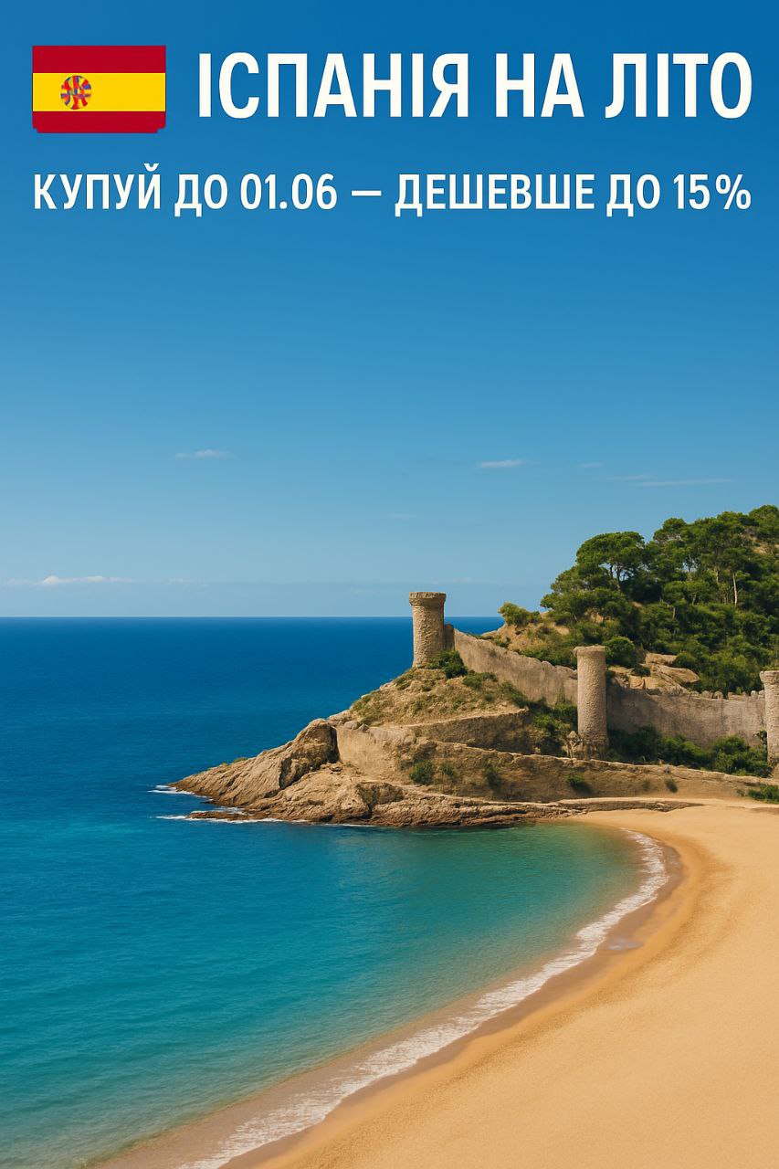 До 1 червня діє спеціальна акція: дешевше до 15% на літні тури до Іспанії. Забронюйте раніше — і заощадьте суттєво.