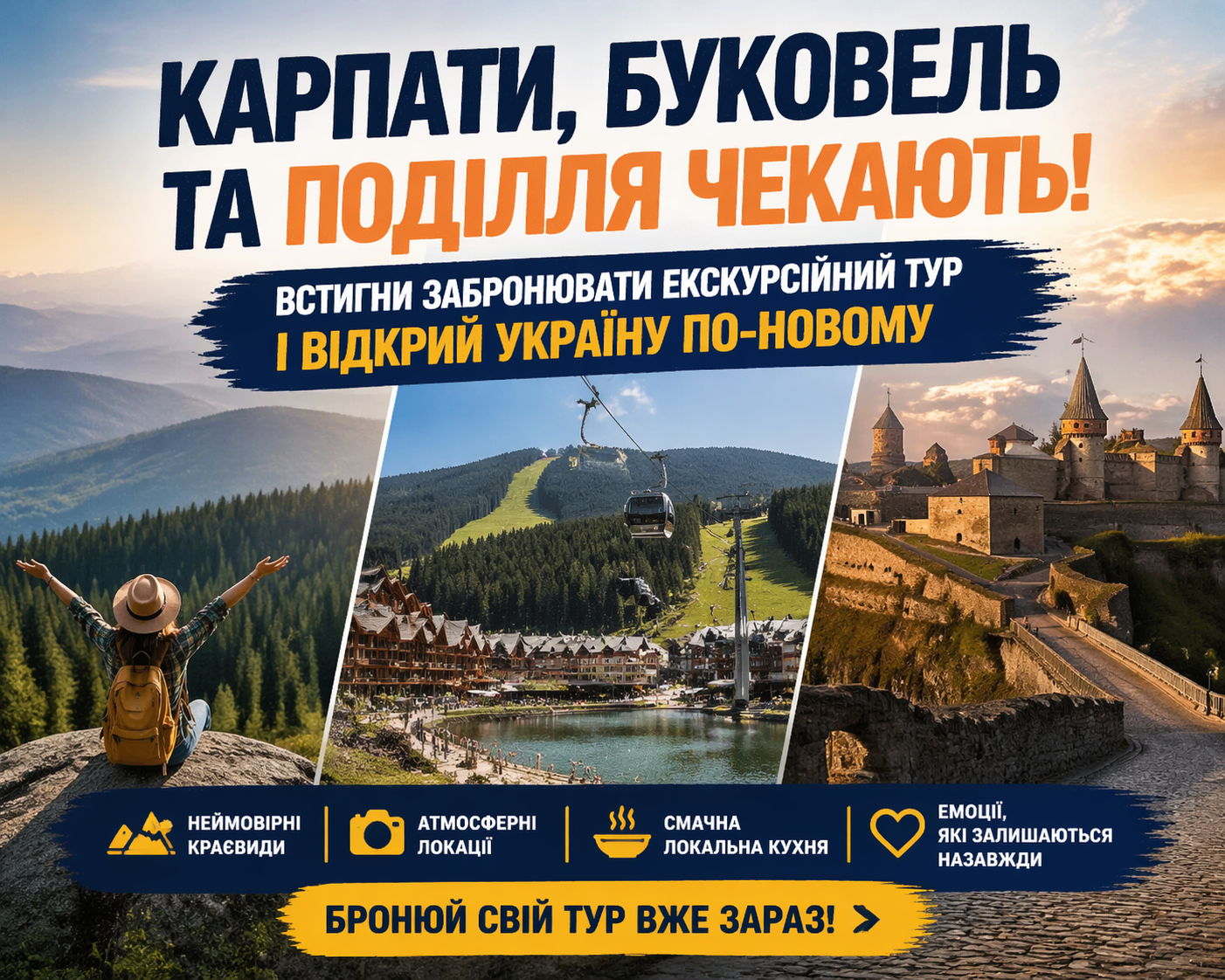 Екскурсійні тури в Карпати та на Поділля — це про емоції, природу і відкриття України з нового боку. І головне — без зайвих клопотів: усе вже організовано за вас.