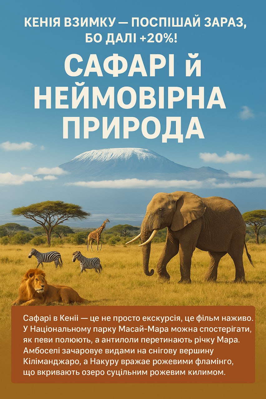 Кенія взимку — поспішай зараз, бо далі +20%! Сафарі й неймовірна природа.