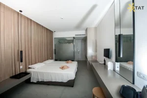 ✔️ Готель складається з трьох 4-поверхових корпусів із ліфтами, близько 200 номерів. Номери обладнані кондиціонером, холодильником, телевізором із пласким екраном, сейфом, письмовим столом, власною ванною кімнатою з душем і косметичними засобами.