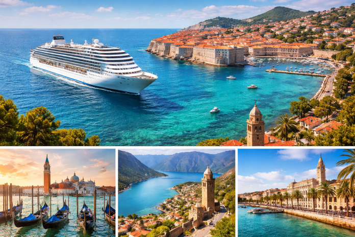 Більшість круїзів починаються з італійських портів, наприклад із Венеція або Барі. Уже саме відправлення з Венеції перетворюється на окрему подію — лайнер повільно проходить повз канали, старі палаци та знамениті острови лагуни. Це одне з найкрасивіших відплиттів у світі круїзів.