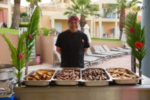 Вечері — різноманітні: грецькі страви, м’ясо, паста, салати, десерти.