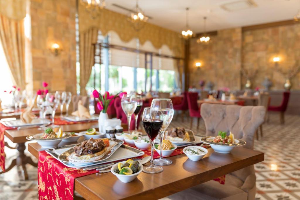 Щоранку для гостей сервірують сніданок, обід і вечерю “шведський стіл”. У барі готелю можна замовити різноманітні напої та чудово відпочити наприкінці дня. У ресторанах подають по меню страви турецької та італійської кухні.