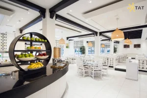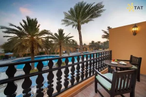 Готель знаходиться між 18-луночним гольф-полем Al Hamra та власним піщаним пляжем, розташованим в Al Hamra Palace Beach Resort — лише за 5 хвилин пішки або на шаттлі.