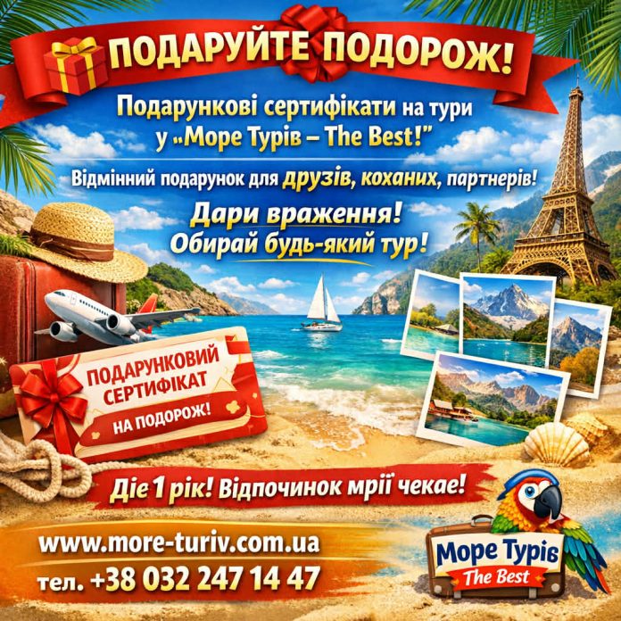 Підходить для будь-якої подорожі з «Море турів – The Best» Подаруйте емоції, відпочинок і нові враження, які запам’ятаються на все життя. ???? www.more-turiv.com.ua ???? +38 032 247 14 47 Турфірма «Море турів – The Best» ????Можемо оформити сертифікат на будь-яку суму від 1000 грн. і більше???? P.S. Сертифікат можна використати лише в нашій турагенції, працюємо як дрстанційно у всьому світі, так і в офісі у Львові, вул.Городоцька, 174, ДЦ «Вулик», 406 оф. #моретурівthebest