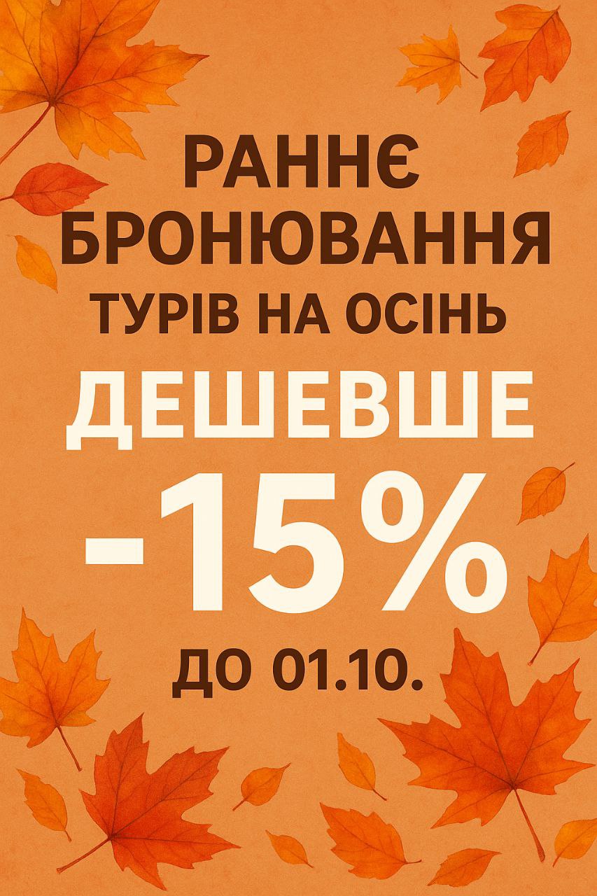 РАННЄ БРОНЮВАННЯ турів на осінь. Дешевше до -15% до 01.10.