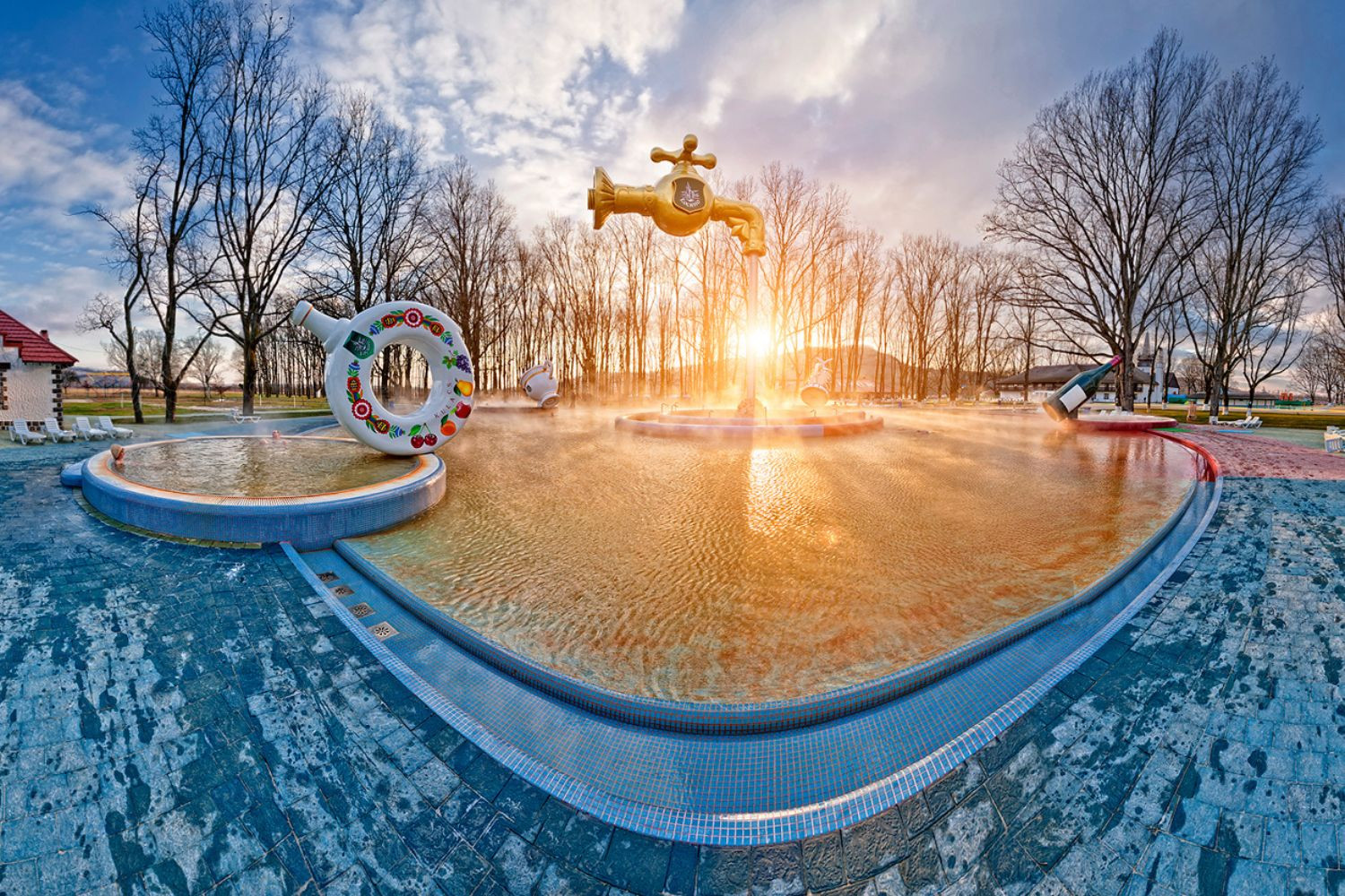 Лікувально-оздоровчий комплекс “Еко термал” зустріне вас двома розкішними термальними басейнами! Перший – просторий відкритий термальний басейн із температурою води 38-39°C. Ви зможете насолодитися купанням під відкритим небом, оточені живописними пейзажами, що створює неповторну атмосферу спокою та умиротворення. Другий – закритий, де ви можете релаксувати в будь-яку пору року. Тут вода збагачена мікроелементами, що благотворно впливають на шкіру та загальний стан здоров’я. До речі, тутешня вода допомагає при різних захворюваннях, включаючи проблеми з опорно-руховим апаратом, серцево-судинними та неврологічними недугами. Комплекс також пропонує різноманітні водні процедури, включаючи гідромасажі, які забезпечать вам додаткові відчуття та емоції.