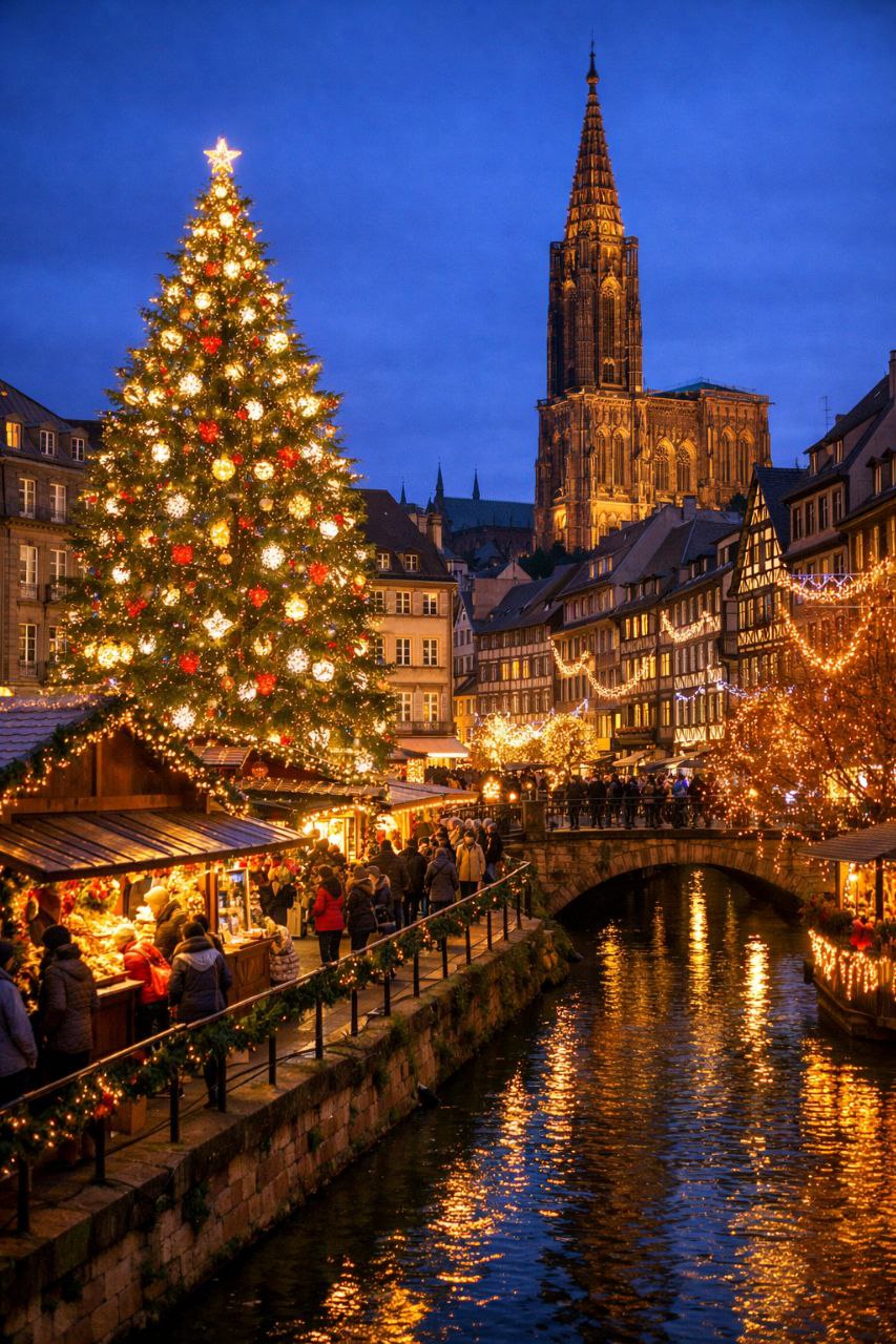 Квартал Petite France — серце різдвяного Страсбурга. Канали, мости, старовинні будинки та святкова ілюмінація створюють казкову атмосферу, особливо у вечірній час. Саме тут відчувається справжній дух ельзаського Різдва.