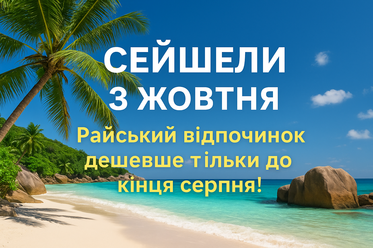 Сейшели — це не просто подорож, а інвестиція у ваші враження та спогади. Забронюйте свій райський відпочинок зараз і заощадьте!