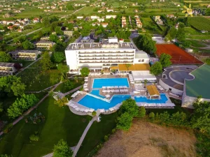 Готель розташований за два кроки від курортного містечка Лептокар’я, на березі піщаного пляжу, недалеко від гори Олімп. Складається з центральної будівлі та двоповерхових бунгало. Готель чудово підійде для спокійного сімейного та молодіжного відпочинку.