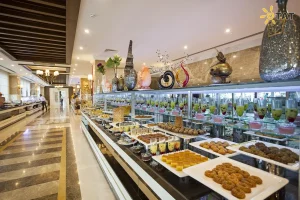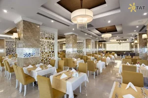 ✔️ Гості можуть насолоджуватись трьома ресторанами з а-ля карт та основним рестораном зі шведським столом, де подають страви італійської та турецької кухні. В готелі працює ультра все включено — у вартість входять вся їжа і напої без обмежень, включаючи мінібар в номері.