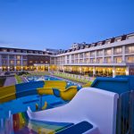 Сучасний готель за 150м від піщано-галькового пляжу (є снек-бар на пляжі). Чудово підійде для сімейного відпочинку. На території готелю відкритий басейн з водними гірками та дитячий басейн (для найменших), ресторани, бари, анімація. Поруч з готелем великий вибір магазинчиків, кафе тощо.