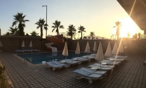Цей затишний готель розташований на першій береговій лінії в районі Тосмура. На території готелю є два відкритих басейни з водною гіркою. Для любителів активного відпочинку пропонуються настільний теніс та анімаційні програми. Ви можете розслабитися в спа-центрі з турецькою лазнею та сауною. Харчування організовано за системою «все включено», що включає головний ресторан та кілька барів, зокрема бар біля басейну та бар на пляжі. Для дітей є дитячий басейн, міні-дискотека та дитячий майданчик.