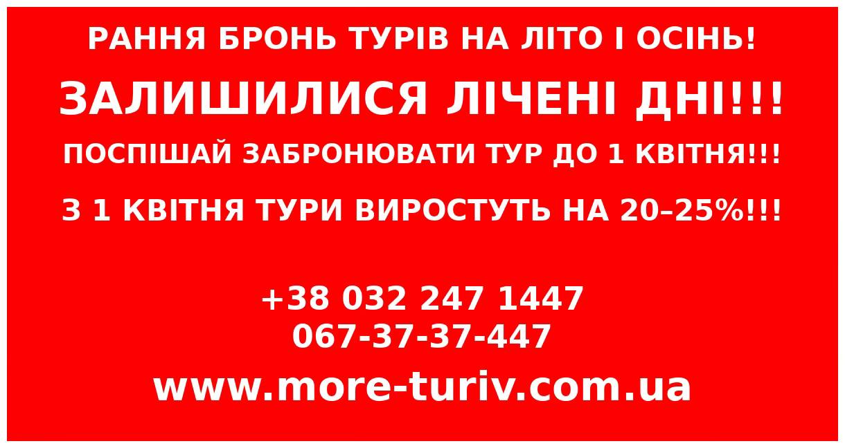 Не втрачайте можливість придбати тур дешевше саме зараз.