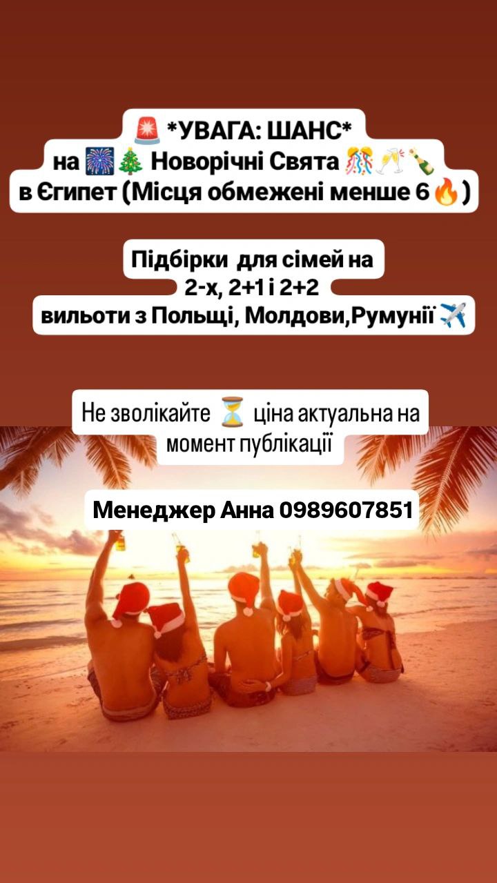 *УВАГА: ШАНС* на Новорічні Свята в Єгипет (Місця обмежені менше 6)
