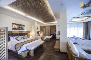 Дизайн у традиційному в’єтнамському стилі з поєднанням сучасного комфорту. Просторі бунгало та вілли з приватними верандами й видом на океан або тропічний сад. Власний Aroma Spa з натуральними процедурами та арома-терапією.