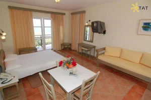 Апарт-готель у грецькому стилі – світлі просторі номери та апартаменти з кухонним куточком, що зручно для сімейного відпочинку.